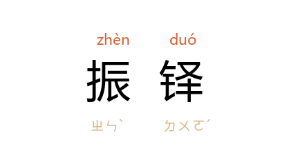 ⒈ 摇铃。古代宣布政教法令时,振铎以警众。铎,有舌的大铃。