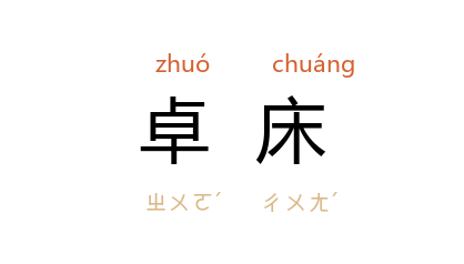 引《资治通鉴·汉献帝建安五年》“宾退,独引 肃 合榻对饮” 元 胡三省 注:“榻,床也。有坐榻,有卧榻。今 江 南又呼几案之属为卓床。卓,高也,以其比坐榻、卧榻为高也。合榻,犹言合卓也。”