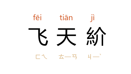 引《宋书·五行志一》:“宋文帝 元嘉 六年,民间妇人结髮者,三分髮,抽其鬟直向上,谓之‘飞天紒’。”清 方以智 《通雅·衣服》:“宋 元嘉 飞天紒,始自 东府,即 孙寿 堕马也。”