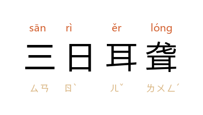 ⒈ 三天失去听觉。极言受震动之烈。亦作:三日聋。