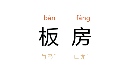 ⒉ 用木板隔成的房间。亦指用木板搭建的简陋房屋。