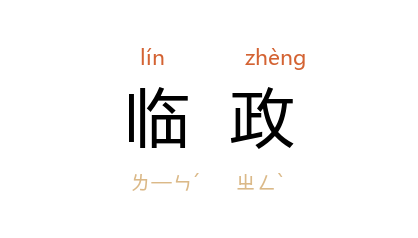 引《左传·襄公二十六年》:“夙兴夜寐,朝夕临政,此以知其恤民也。”《后汉书·陈蕃传》:“今陛下临政,先诛忠贤。遇善何薄?待恶何优?”宋 曾巩 《宜黄县县学记》:“而临政治人之方,固不素讲。”