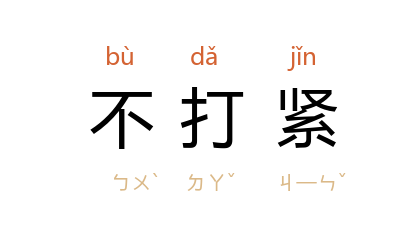 ⒈ 不要紧、没关系。元·无名氏也作「不打悭」、「不大紧」、「不至紧」。