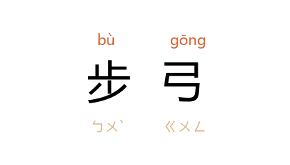 引《福惠全书·卷一〇·清丈部·定步弓》:「丈田地以步弓为准,其弓悉用宪颁旧式。」