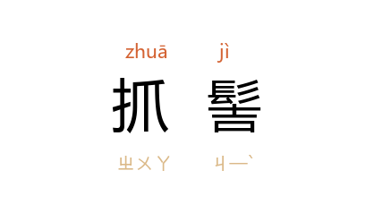 引《老残游记·第二回》:「帘子里面出来一个姑娘,约有十六、七岁,长长鸭蛋脸儿,梳了一个抓髻。」