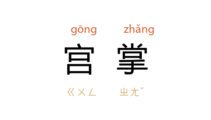 ⒈ 《新唐书·艺文志一》:“贞观中,魏征、虞世南、颜师古继为秘书监,请购天下书,选五品以上子孙工书者为书手,缮写藏于内库,以宫人掌之。”后遂以“宫掌”称图书收藏者。