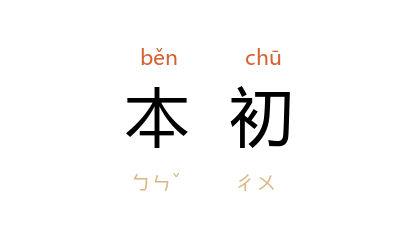 ⒈ 原始、初始。宋·司马光〈稷下赋〉:「诚能拨去浮末,敦明本初,修先王之典礼,践大圣之规模。」也作「本始」。