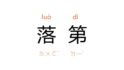 ⒈ 应试失败,未被录取。唐·白居易〈把酒思闲事〉诗二首之一:「乞钱羁客面,落第举人心。」也作「下第」。