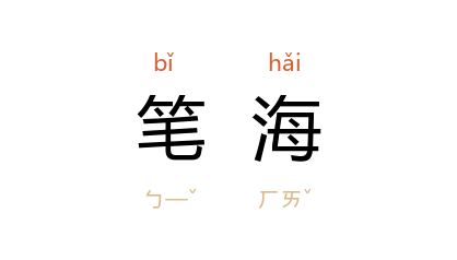 引《红楼梦》第四十回:“案上堆着各种名人法帖,并数十方宝砚,各色笔筒,笔海内插的笔如树林一般。”