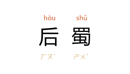 ⒈ 五代十国之一。后唐西川节度使孟知祥据蜀称帝,建号蜀,为别于唐末王建之蜀,故称后蜀(公元934年-965年)。