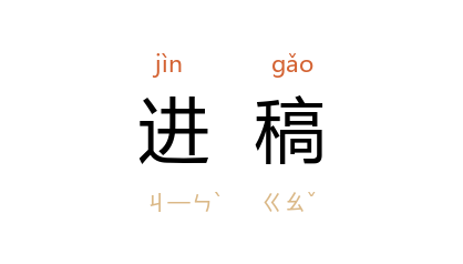 引元 邓文原 《赠赵炼师奉祠南海会稽》诗:“文园 进稿无封禪, 宣室 求言有受釐。”元 胡长孺 《题<开元三马图>》诗:“俯仰布置号进稿,图成欲上 明光宫。”明 朱国祯 《涌幢小品·讲读》:“虽日讲进稿不废,要之,皆成故事故纸矣。”