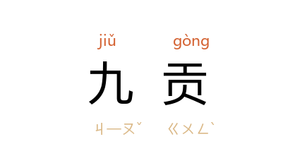 引《周礼·天官·大宰》:“以九贡致邦国之用,一曰祀贡,二曰嬪贡,三曰器贡,四曰币贡,五曰材贡,六曰货贡,七曰服贡,八曰斿贡,九曰物贡。”《晋书·食货志》:“昔 周 姬公 制以六典,职方陈其九贡,颁财内府,永为不刊。”《旧唐书·昭宗纪》:“且四海之内,创痏犹殷,九贡之邦,纲条未理。”章炳麟 《封建考》:“邦国既有九贡,其诸侯所未食者,附庸蕞猥,宫简事希。”