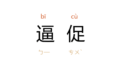 逼迫催促。 《三国志·魏志·阮瑀传》“太祖 并以 琳、瑀 为司空军谋祭酒,管记室” 裴松之 注引 张騭 《文士传》:“太祖 雅闻 瑀 名,辟之,不应,连见偪促,乃逃入山中。”