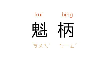 引《汉书·梅福传》:“今乃尊宠其位,授以魁柄,使之骄逆,至於夷灭,此失亲亲之大者也。”颜师古 注:“以斗为喻也,斗身为魁。”唐 刘禹锡 《赠司空令狐公集》:“遂委魁柄,斯以文雄於国也。”明 张景 《飞丸记·戟户逢仇》:“持魁柄恣纷更,认朝纲常秉更,取竭錙銖真忒横。”章炳麟 《訄书·正葛》:“法家之所患,在魁柄下移。”