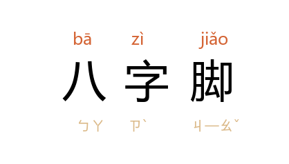 ⒈ 两脚尖向外撇,呈八字形,谓之“八字脚”。