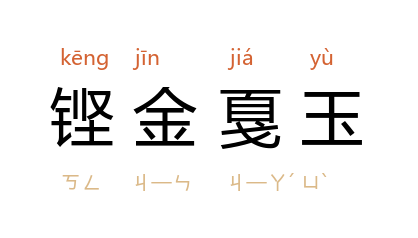 引清 周亮工 《书影》卷一:“张菉居 曰:明 诗四变……吾 豫 当初变时,一人起而左右北地,鏗金戛玉,至今踔厉词坛。”亦作“鏗金霏玉”。 清 钮琇 《觚賸·樵隐》:“崔 出《樵隐近咏》相示…… 黄 不觉惊赏曰:‘此真鏗金霏玉之音也。’”