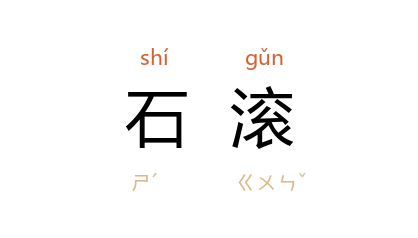 引明 马愈 《马氏日抄·奇盗》:“夜已昏暗,众出庙门,坐石滚上,疑未决。”《诗刊》1978年第1期:“喜鹊落在梅树上,石磙打来也不飞。”沙汀 《记贺龙》:“‘真了不得! 张桂生 已经学会认马了呀。’他轻笑着切断他,从石磙子上站起来了。”