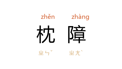 引前蜀 张泌 《浣溪沙》词:“枕障燻鑪隔绣幃。”宋 周邦彦 《大酺·春雨》词:“润逼琴丝,寒侵枕障,虫网吹黏帘竹。”清 龚自珍 《说京师翠微山》:“不居正北,居西北,为伞盖,不为枕障也。”