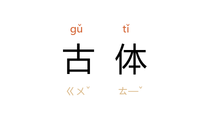 引南朝 梁 锺嵘 《诗品》卷下:“元瑜 坚石 七君诗,并平典不失古体。”《梁书·刘之遴传》:“之遴 好属文,多学古体。”《南史·萧藻传》:“善属文,尤好古体。”