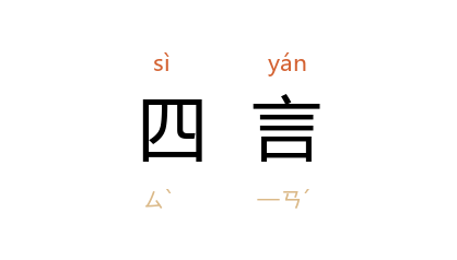 ⒈ 四个字。多指诗句的字数。指四言诗。