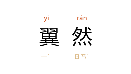 ⒈ 鸟展翅貌。常用以形容自然飘逸、恭谨端好之状。亦用以形容山石或亭台等建筑物高耸开张之状。