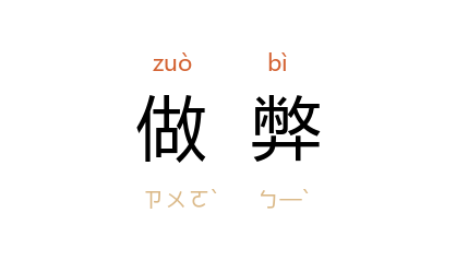 ⒈ 作弊,舞弊。用欺骗的方式做违法乱纪或不合规定的事情。