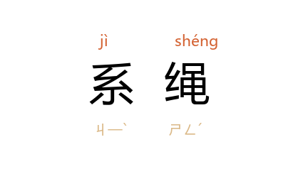⒉ 用来拴住动物使它只能在允许范围内活动或喂食的物件;好像系绳、系链那样使用的东西(如绳、缆)