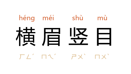 例如:「瞧他横眉竖目的样子,最好少去惹他。」
