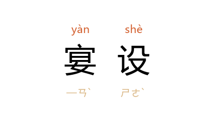 引《敦煌变文集·伍子胥变文》:“兵马既至 江 头,便须宴设,兵士、军官食了,便即渡 江。”宋 赵彦卫 《云麓漫钞》卷三:“在国初,有士夫被谴而责为衙校者,如海外数州,每闕守,帅司或差衙校摄州郡,宴设、修造则令赔补及出犒赏,遂有破家之患。”宴席。 《后汉书·杨彪传》:“兖州 刺史 曹操 上殿,见 彪 色不悦,恐於此图之,未得讌设,託疾如厕因出还营。”
