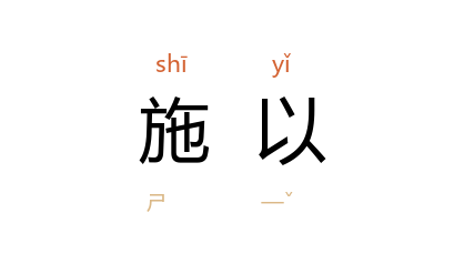引鲁迅 《南腔北调集·论赴难和逃难》:“施以狮虎式的教育,他们就能用爪牙;施以牛羊式的教育,他们到万分危急时还会用一对可怜的角。”郭沫若 《集外·<国防·污池·炼狱>》:“凡是非同一立场的人爱施以毫不容情的打击。”
