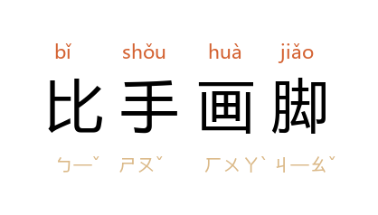 ⒈ 以手脚比画,帮助意思的表达,以求对方了解。