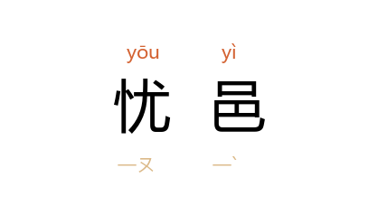 引《世说新语·赏誉下》“庾公 为护军,属 桓廷尉 觅一佳吏” 刘孝标 注引《徐江州本事》:“﹝ 桓彝 ﹞至 广陵 寻亲旧,遇风停浦中累日,在船忧邑,上岸消摇。”《晋书·徐宁传》载此事,字作“忧悒”。 《宋书·张畅传》:“魏 主言太尉、镇军并皆年少;久阔南信,殊当忧邑。”茅盾 《霜叶红似二月花》十一:“他们的皱脸上罩满了焦灼和忧悒。”