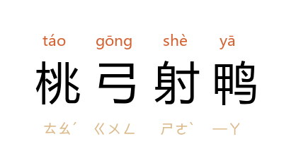 引唐 孟郊 《送淡公》诗之四:“笑伊水健儿,浪战求光辉。不如竹枝弓,射鸭无是非。”射鸭,一种水上游戏。竹枝弓,即桃竹弓。后因以“桃弓射鸭”指隐士的闲逸生活。 宋 苏轼 《读孟郊诗》诗之二:“桃弓射鸭罢,独宿短蓑舞。”