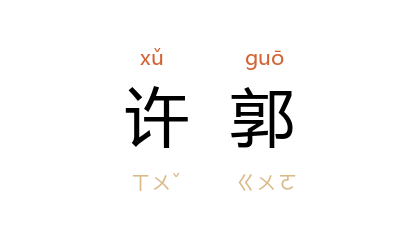 ⒈ 东汉许劭、郭太的并称。《后汉书·许劭传》:“许劭字子将,汝南平舆人也。少峻名节,好人伦,多所赏识。若樊子昭、和阳士者,并显名于世。故天下言拔士者,咸称许郭。”《文选·刘孝标〈广绝交论〉》:“遒文丽藻,方驾曹王;英跱俊迈,联衡许郭。”张铣注:“谓与许劭、郭林宗齐衡也。”唐陆龟蒙《顾道士亡弟子奉束帛乞铭于袭美因赋戏赠》诗:“亦谓神仙同许郭,不妨才力似班扬。”后亦用以泛指喜于奖掖后进的人。