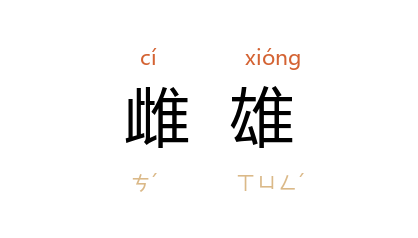 ⒌ 引申为竞争;逞强争胜。 宋 沉括 《梦溪笔谈·杂志一》:“中山 人常好与 镇 人相雌雄。