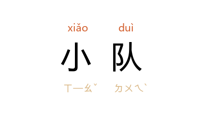 ⒉ 部队基层编制。现代有些军警支属亦称小队,人数不等。