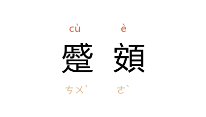 引《孟子·梁惠王下》:“百姓闻王鐘鼓之声,管籥之音,举疾首蹙頞而相告。”赵岐 注:“蹙頞,愁貌。”宋 郭彖 《睽车志》卷五:“见若假面数十,取其间锁颐蹙頞大丑者,割去面而易之。”