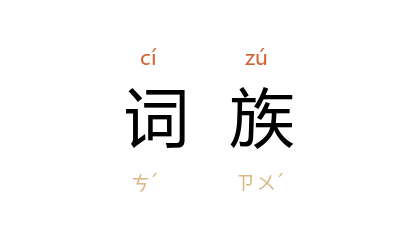 ⒈ 由同一个词根衍生的词群。如分、份、分子、分儿、分化等。
