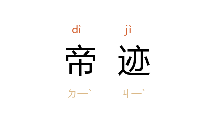 引《文选·颜延之<应诏宴曲水作诗>》:“帝迹悬衡,皇流共贯。”李善 注:“《春秋合诚图》曰:‘ 黄帝 有迹,必稽功务法。’ 宋均 曰:‘迹,行迹。谓功绩也。’”南朝 梁 任昉 《奉答敕示七夕诗启》:“窃惟帝迹多绪,俯同不一。”