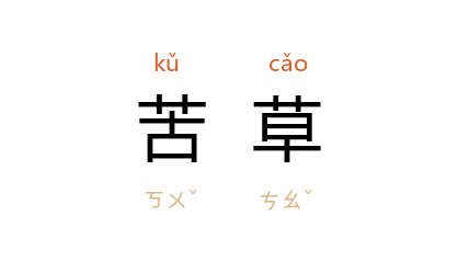 引北魏 贾思勰 《齐民要术·杂说》:“岁欲苦,苦草先生。”原注:“葶藶。”宋 陈师道 《后山谈丛》卷二:“谚曰:‘甘草先生则麦熟,苦草先生则人疫。’甘草,薺;苦草,黄蒿也。”清 唐孙华 《夏日园居杂咏》之十:“苦草王瓜随地满,芋魁豆饭一生过。”《天雨花》第十三回:“参汤煎好忙忙送,又烧苦草那消停。”