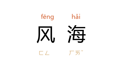 引《北齐书·文宣帝纪》:“逮光统前绪,持衡匡合,华戎混一,风海调夷,日月光华,天地清晏。”唐 李百药 《鹦鹉赋》:“候风海而作贡,备黼黻以成章。”