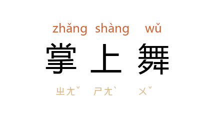 引《南史·羊侃传》:“儛人 张浄琬,腰围一尺六寸,时人咸推能掌上儛。”《梁书·羊侃传》作“掌中舞”。 清 方绚 《香莲品藻·香莲宜称二十六事》:“为掌上舞。”