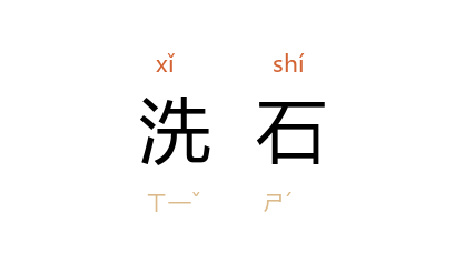 引《山海经·西山经》:“钱来之山,其上多松,其下多洗石。”郭璞 注:“澡洗可以磢体去垢圿。”南朝 宋 刘敬叔 《异苑》卷二:“永康 王旷 井上有洗石,时见赤气,后有二胡人寄宿,忽求买之。”