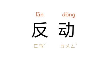 ⒈ 对于现实的政治运动或社会运动,表示反对的意见或采取反对的行动,称为「反动」。