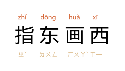 引《五灯会元·卷一七·隆庆庆闲禅师》:「不用指东画西,实地上道将一句来。」《东周列国志·第四三回》:「面无惧色,选著两个指头,指东画西,说出一段利害来。」