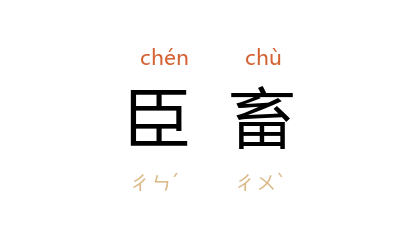 引《战国策·魏策二》:“﹝ 魏王 ﹞乃使人报於 齐,愿臣畜而朝。”鲍彪 注:“畜,自比犬马也。”亦谓使其臣服如畜。 《史记·秦始皇本纪》:“二世 与 赵高 谋曰:‘朕年少,初即位,黔首未集附。先帝巡行郡县,以示强,威服海内。今晏然不巡行,即见弱,毋以臣畜天下。’”唐 柳宗元 《封建论》:“秦 之所以革之者,其为制,公之大者也;其情,私也:私其一己之威也,私其尽臣畜於我也。”