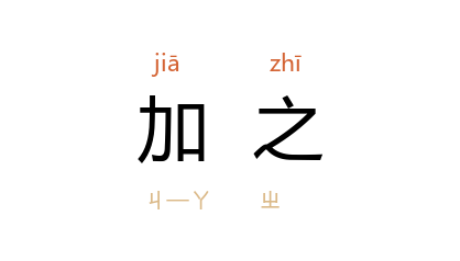 ⒈ 连词,表示进一步的原因或条件:天气闷热,加之窗外车马声不断,简直无法休息。