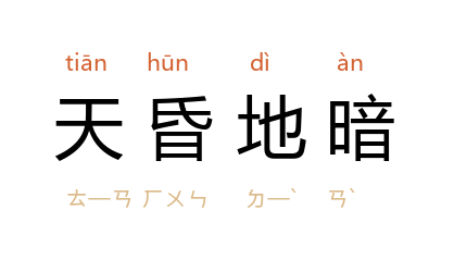例如:「清末官僚腐败,使得当时朝政天昏地暗。」