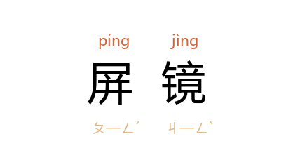 引《二十年目睹之怪现状》第八回:“桌上放着一面屏镜,自己弯下腰来一照,暗想我不料遇到了这个好人,天下那里有这便宜事!”沙汀 《记贺龙》二一:“他对了一张屏镜站着,仔细地重新戴着帽子。”