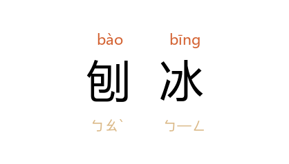 ⒈ 一种冰品。把冰块刨碎,再浇上水果汁或各种物料,以供食用。也作「铇冰」。